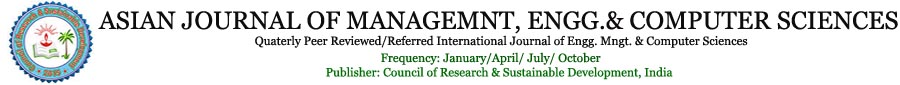 Asian Journal of Management, Engineering & Computer Sciences (E-ISSN 2455-7013) is the official organ of Council of Research & Sustainable Development. The Journal is a Double Blind Reviewed, Open Access, Online and International journal of Management, Engineering, Computer Sciences and all relevant areas. The scope of journal is therefore necessarily broad to cover recent discoveries in structural and functional principles of the subjects. It encourages and provides a forum for the publication of research work in different fields of above subjects. The Journal is to contribute towards developing and disseminating of knowledge through publishing original research, review papers and short communications in the various fields of above areas. Manuscripts must contain significant new findings and must not have been published elsewhere nor be simultaneously under consideration for any other publication outlet.